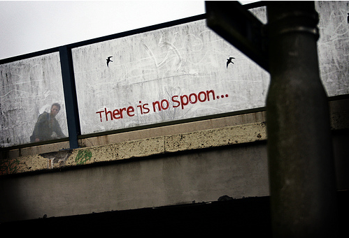 Ze wees op een wel heel erg abstract schilderij, bonte vegen op een neutrale achtergrond.